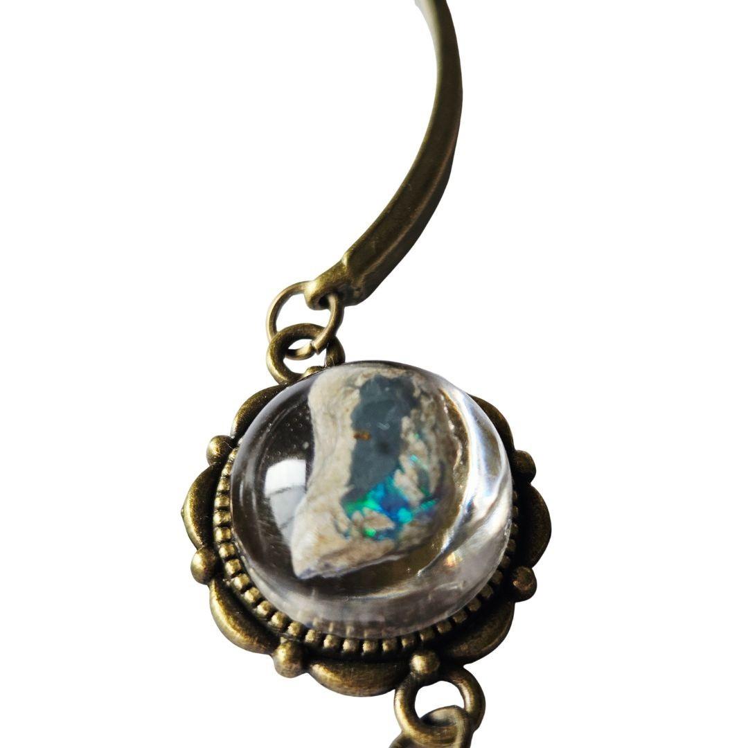 SIZE: Round opal is approximately 15mm (In a resin dome to highlight the natural colours which will move as you tilt it)
